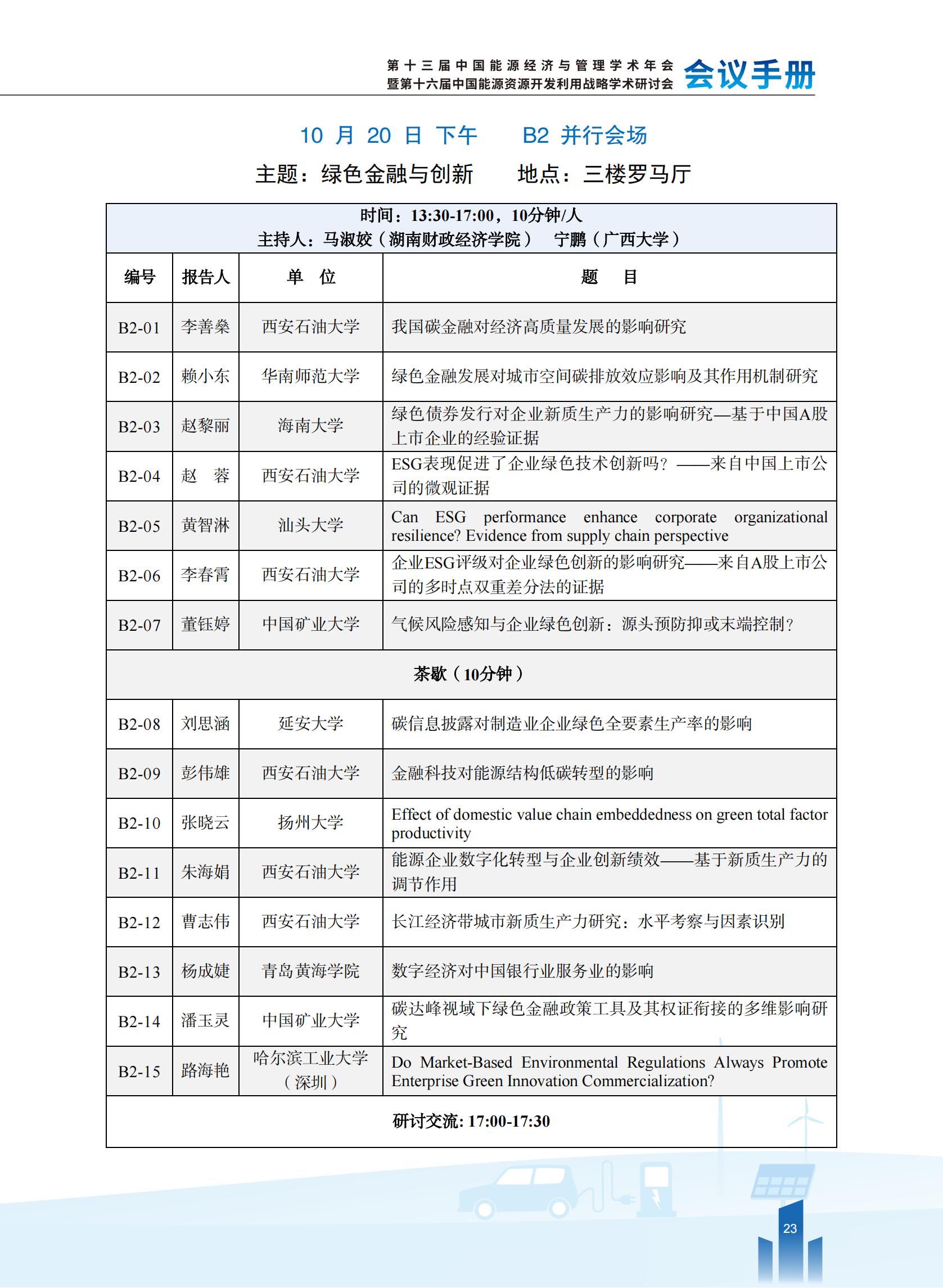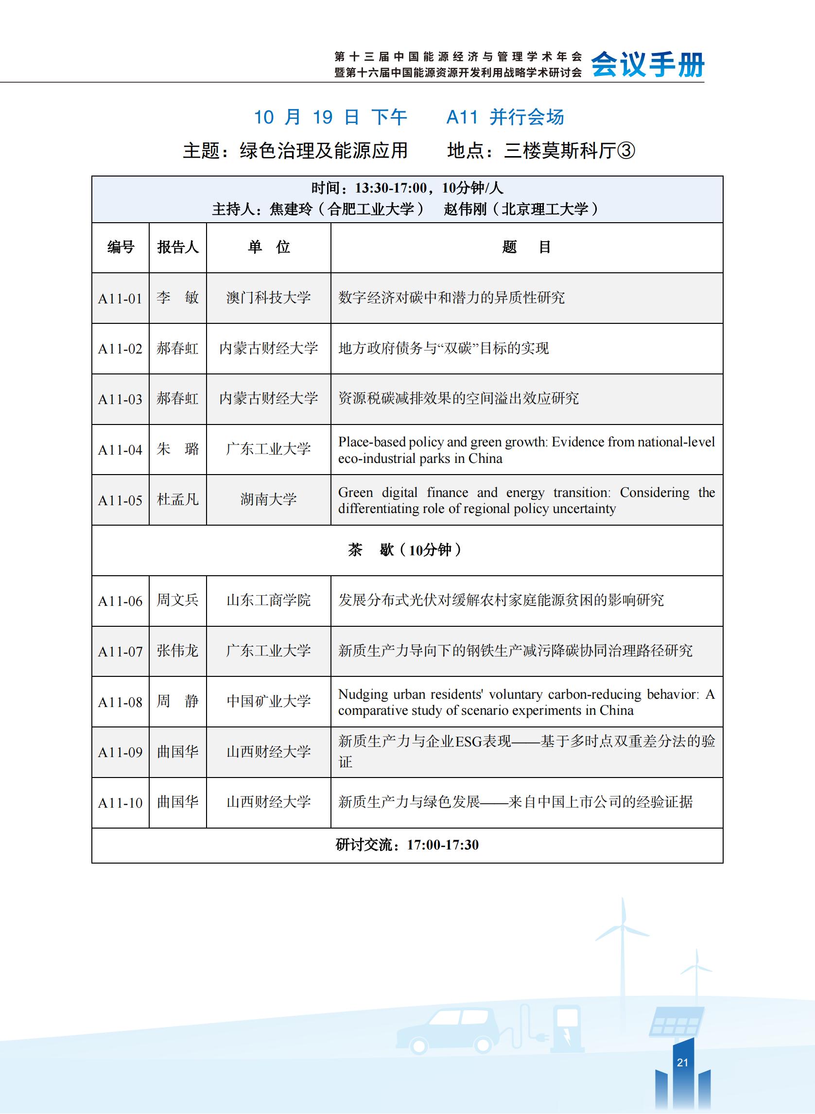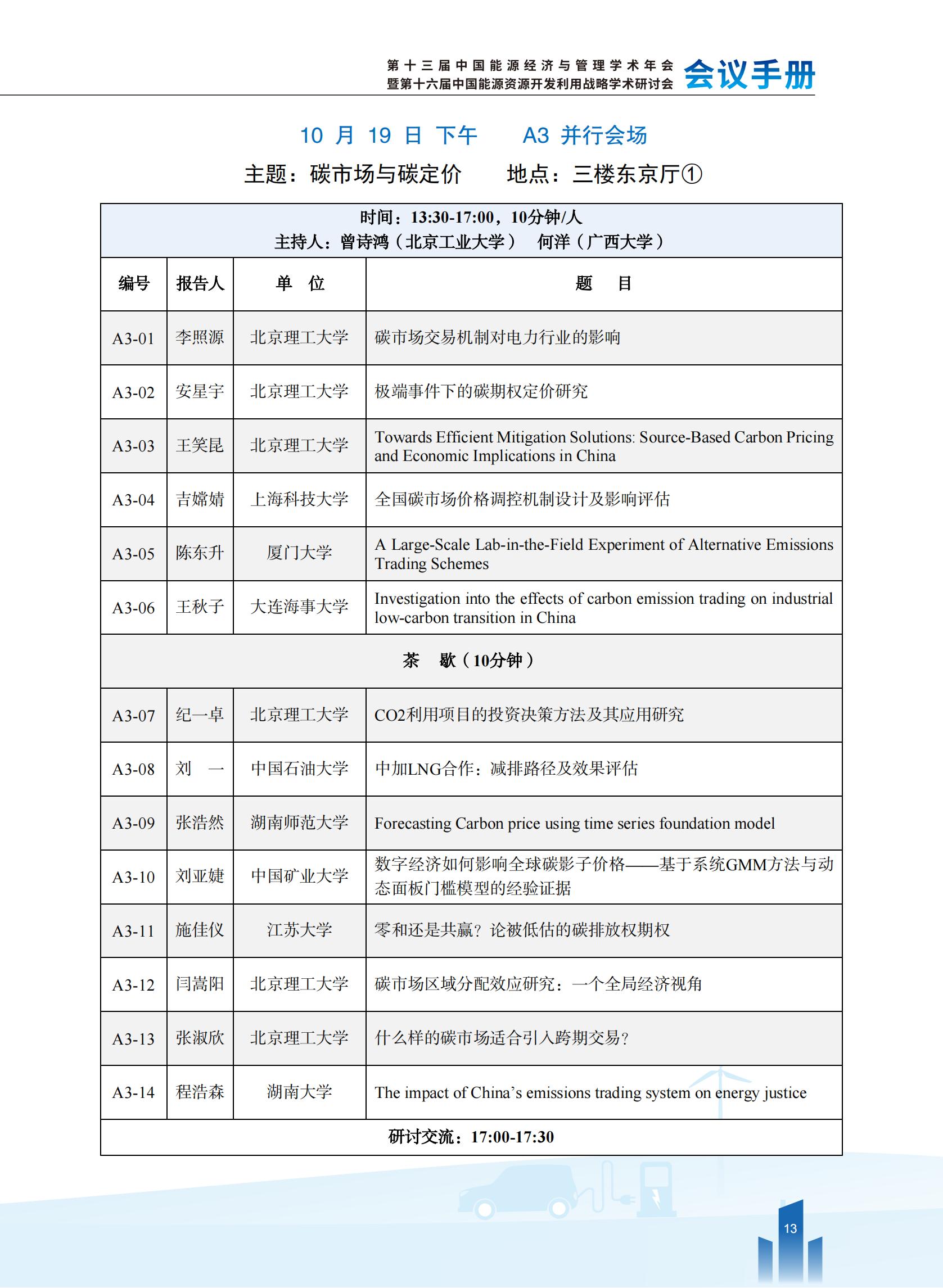 第十三届中国能源经济与管理学术年会暨第十六届中国能源资源开发利用战略学术研讨会会议手册