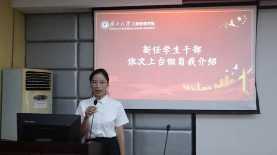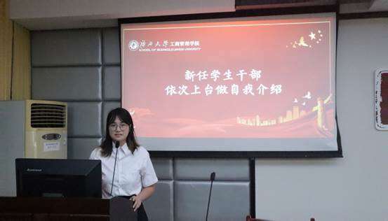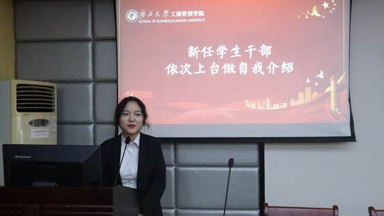 名单宣读完毕,新任学生干部上台依次进行自我介绍。