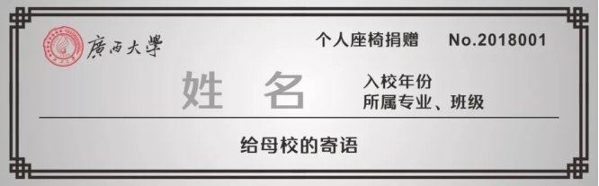 将在所认捐座位,镌刻校友姓名、专业、班级等信息,让校友在母校留下永恒的印记。捐赠校友同时还将获得太阳城官网