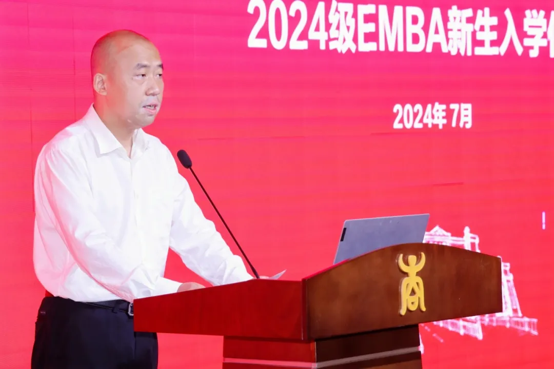 的基本情况,在同学们即将开启EMBA学习之际,他提出三点期望,一是持续学习,开放创新;二是跨界融合,拓宽视野;三是责任担当,贡献社会,并祝愿同学们能够登高望远,不惧挑战,学有所成、学有所获。