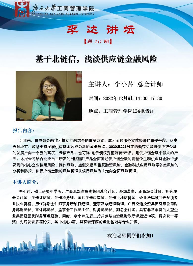 “李达讲坛”117期:基于北链信,浅谈供应链金融风险