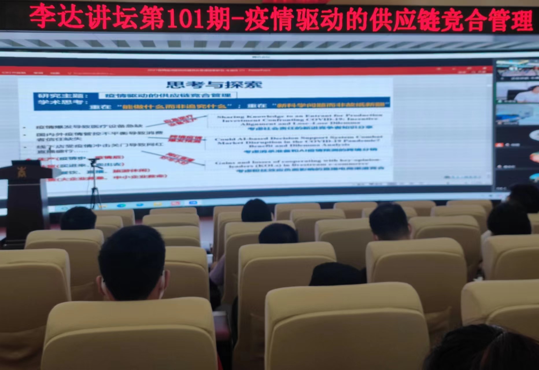 第101期“李达讲坛”,为师生们做主题为“疫情驱动的供应链竞合管理”的学术分享。讲坛在线上线下同时进行,约有师生100余人参加。太阳城官网