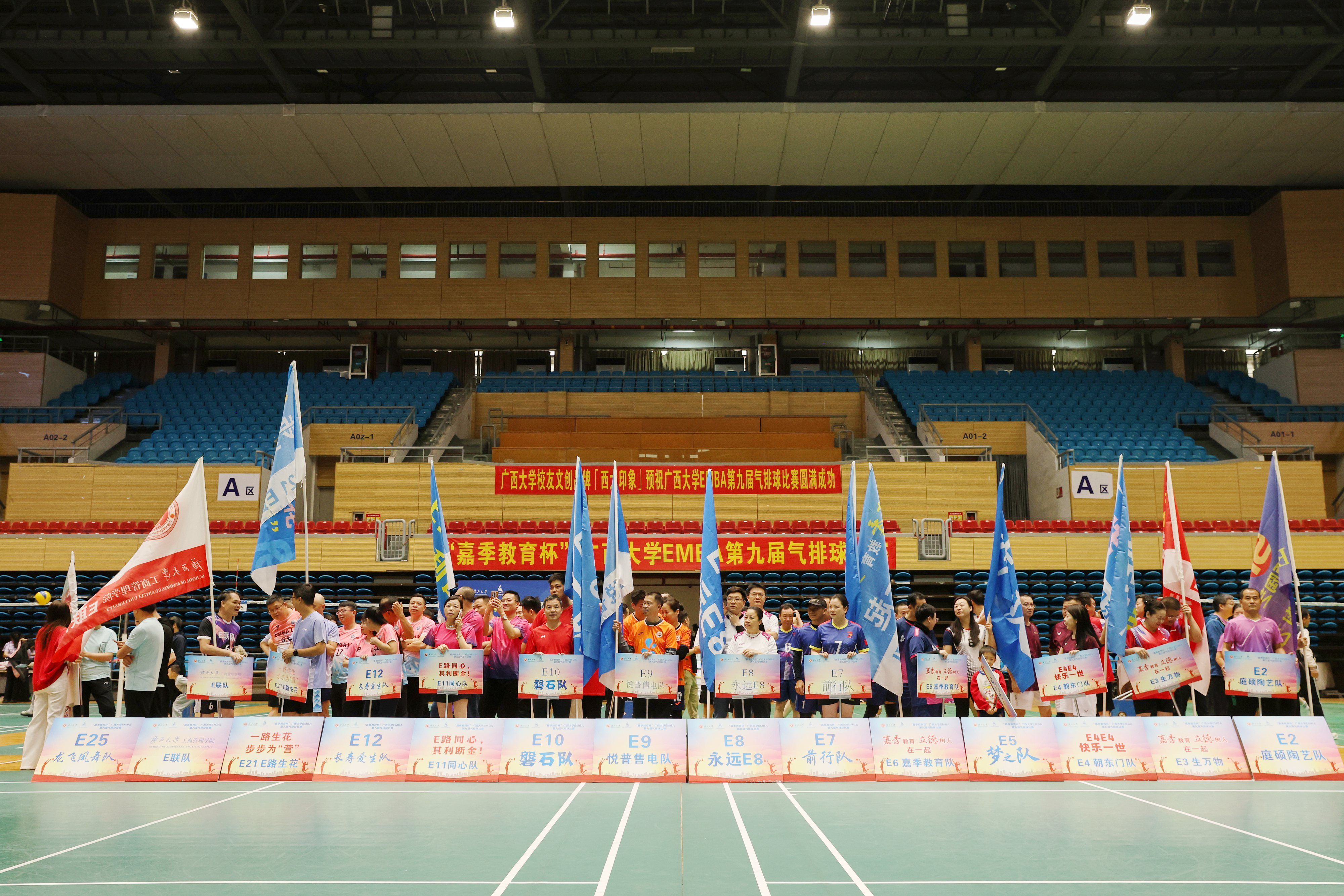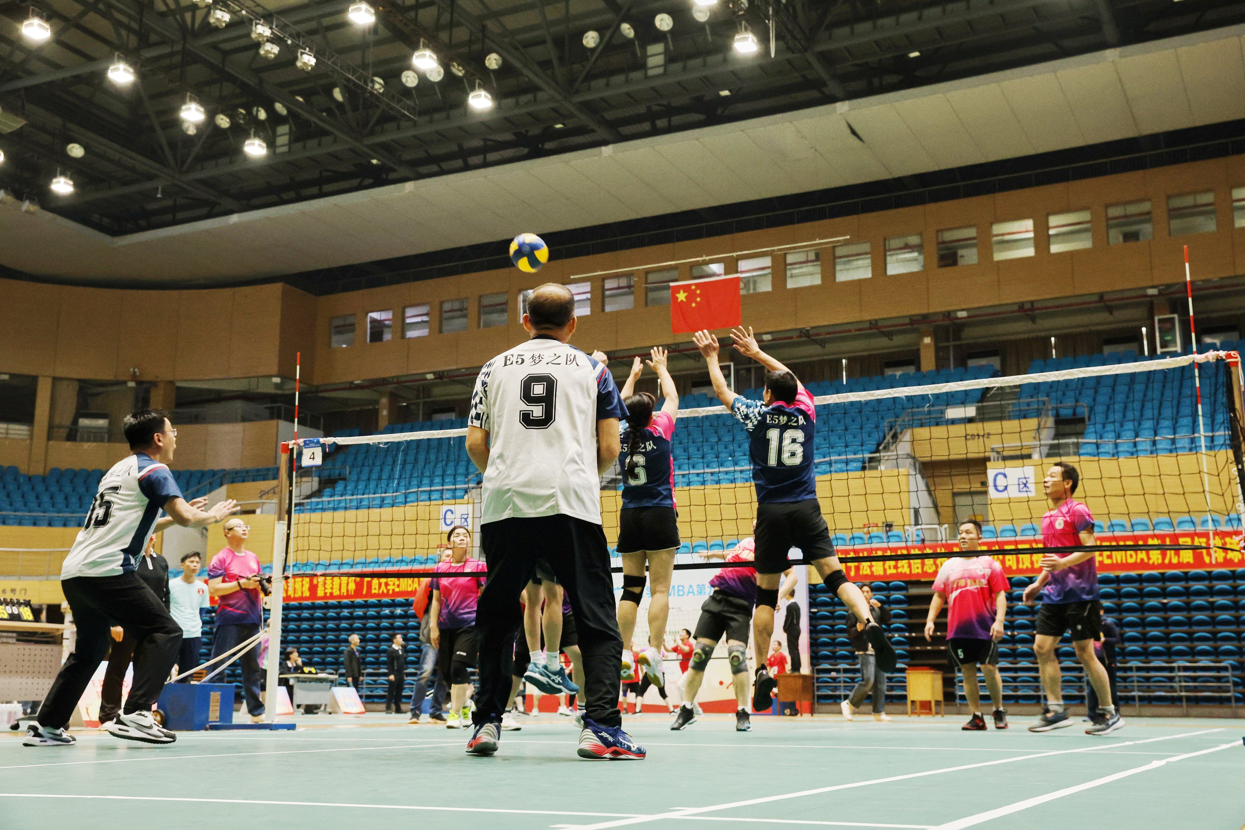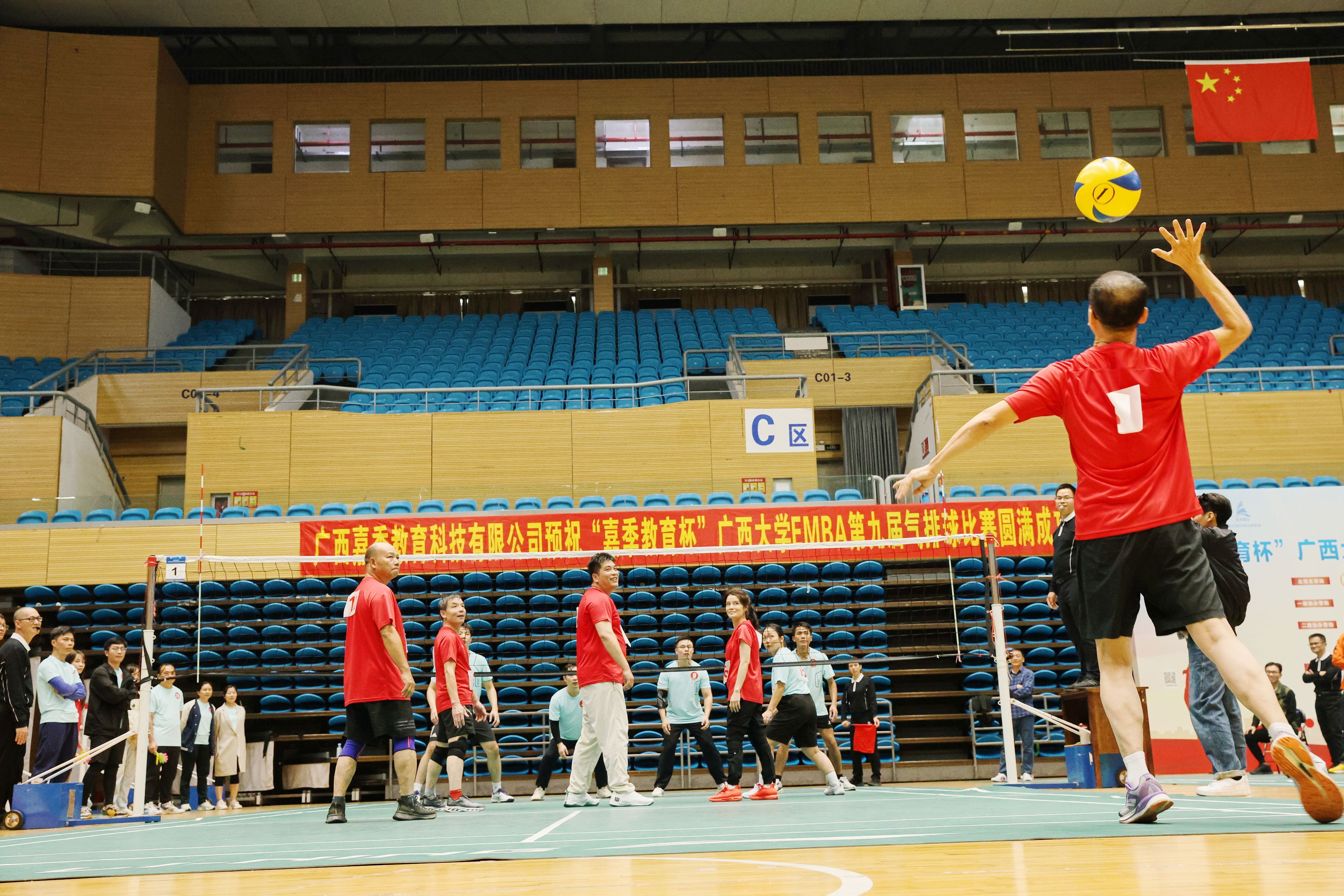 主办,广西大学EMBA同学会承办的“嘉季教育杯”广西大学EMBA第九届气排球赛,在广西大学西校园体育馆拉开帷幕。广西大太阳城官网