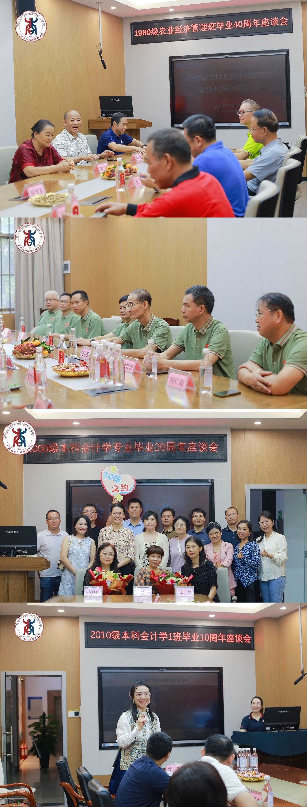 上午,毕业40周年和30周年的本科农业经济管理专业校友,以及20周年和10周年的本科会计专业校友,分别举办了返校座谈会。座谈会上,师生们共享相聚的喜悦,共同回忆往昔,分享了各自的工作与生活感悟,场面温馨热烈。