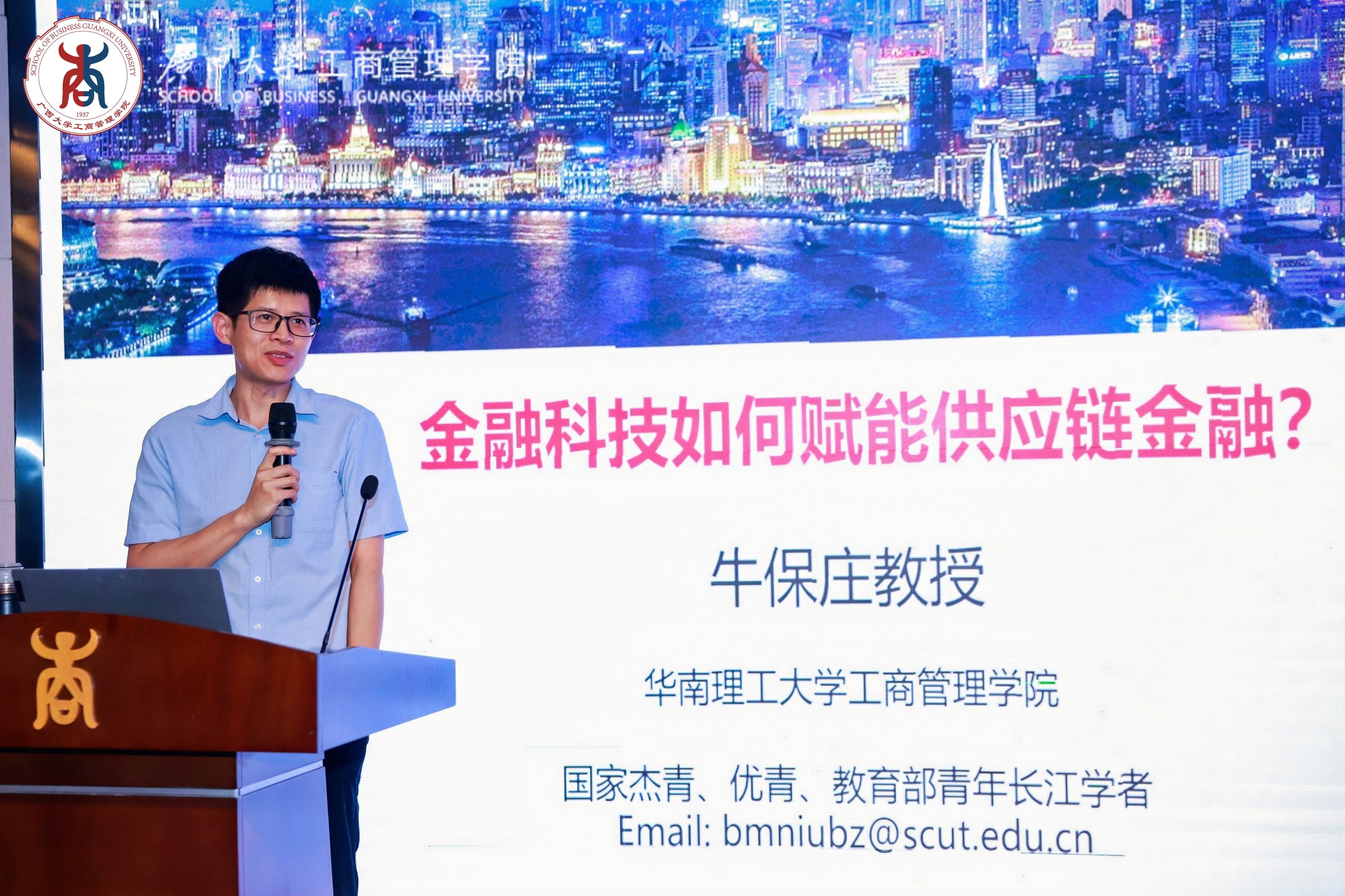 特邀华南理工大学二级教授、博士生导师、国家杰出青年科学基金获得者牛保庄教授作题为“金融科技如何赋能供应链金融?”的专题演讲,朱帮助院长对到来的嘉宾和校友们表示了热烈的欢迎和感谢。论坛和演讲中的精彩内容,为校友们提供了精彩的知识盛宴。