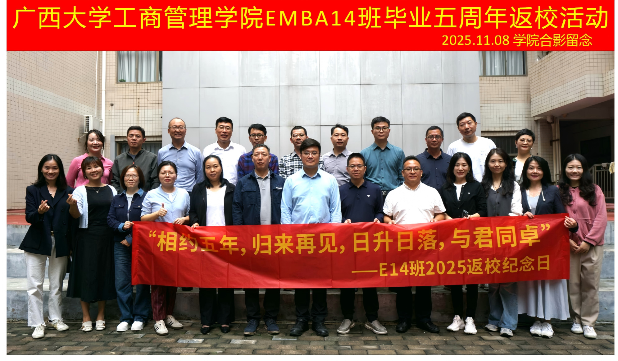 迎来了一批特殊的“家人”—EMBA14班的校友们,在毕业五周年的重要时刻重返母校,共赴一场“重温同窗谊,再启新篇章”的温情聚会。二十余位校友跨越山海,从全国各地奔赴而来,相聚太阳城官网