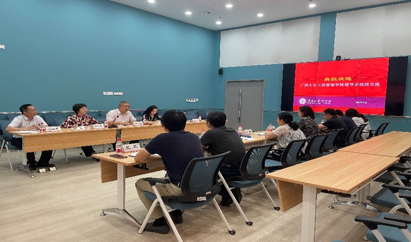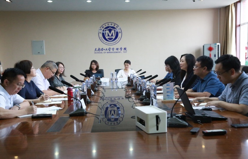 石娟书记、王京滨院长、曹昱亮副院长、孙晖主任等领导热情接待朱院长一行,双方就学科建设、师资队伍建设及行政管理等方面的先进经验,包括新商科改革、交叉学科推进、人才引进、激励机制、文化建设、招聘宣传等方面进行了深入且富有成效的交流。双方还就AACSB认证方面的先进经验,包括认证工作开展组织、流程与认证事务等方面进行重点交流。