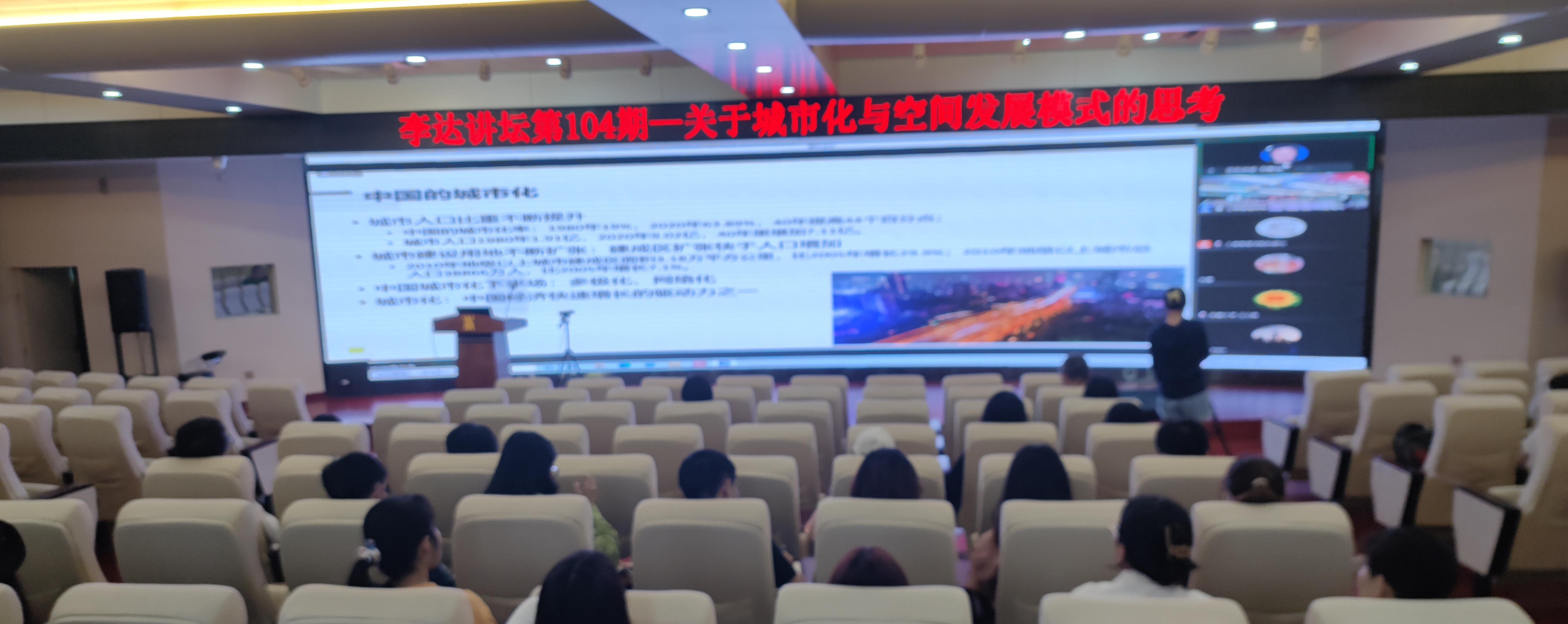 第104期“李达讲坛”,以“关于城市化与空间发展模式的思考”为题,进行学术分享。本次讲坛线上线下同步进行,约有100名师生参加。讲坛由太阳城官网