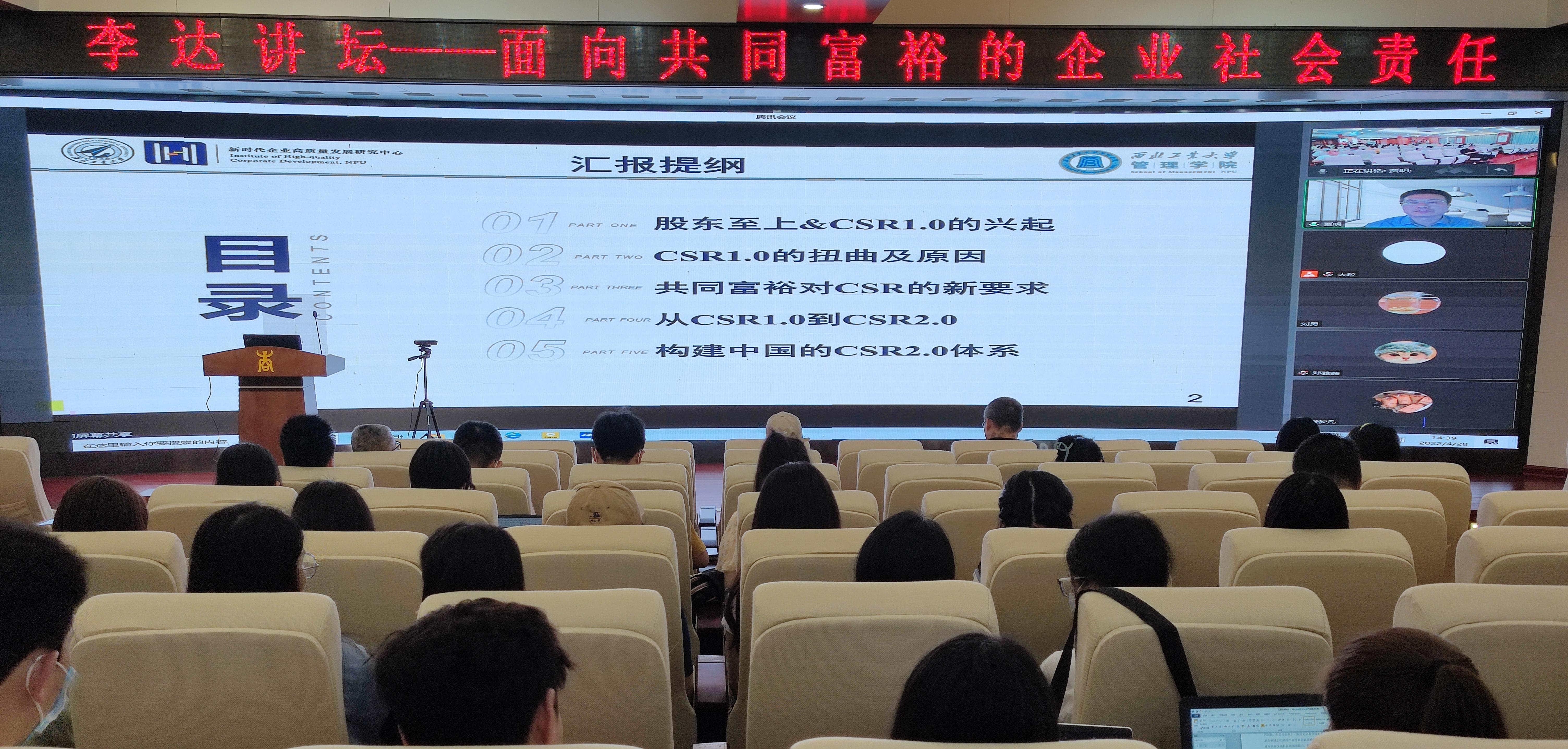 第99期“李达讲坛”,带来题为“面向共同富裕的企业社会责任”的学术研究分享。讲坛在线上和线下同时进行,约120名师生参加。本次讲坛由太阳城官网